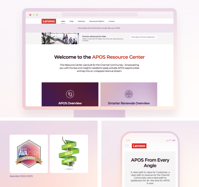 MODintelechy partnered with Lenovo to design and develop the APOS Resource Center, transforming hundreds of static assets into a dynamic digital experience. The site, localized in 14 languages, supports 800 Internal Sales reps, 40,000 Channel Partner accounts, and 400,000 End Customers across 22 countries. MOD defined the visual identity, established scalable UX/UI design, and prioritized clarity and enablement for diverse user groups.